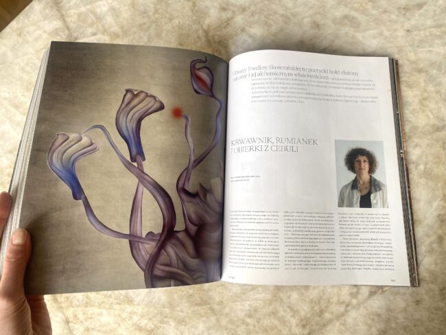 „Praca z roślinami daje mi wolność, której szukałam bardzo długo. W grafice warsztatowej, którą wcześniej praktykowałam, proces jest bardzo zaplanowany. Tymczasem podczas pracy z naturalnymi barwnikami, konieczne jest oddanie głosu roślinom. To jest piękne, że ten kolor jest w nich ukryty, a one nam go dają. To jest dla mnie ogromny prezent”.