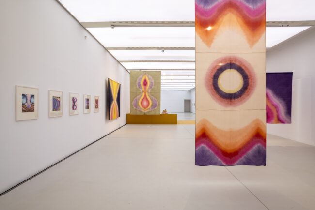 Na wystawie „East-East” zaprezentowano monumentalne płachty jedwabiu, barwione roślinnymi ekstraktami, które artystka często sama odnajduje w przyrodzie, a także cykl akwareli będących świadectwem transformacji, zarówno osobistej, jak i materialnej oraz fizycznej. Skowrońska odwołuje się do tradycji amuletów, totemów i talizmanów – obiektów, które w dawnych wierzeniach funkcjonowały jako narzędzia ochronne, transformacyjne i magiczne. Nie rekonstruuje jednak rytuałów w sposób dosłowny, lecz nadaje im nowy kontekst, w którym magia staje się kategorią epistemologiczną – sposobem poznania i organizowania rzeczywistości poza racjonalnym dyskursem. Jej tkaniny nie są więc prostą rekonstrukcją dawnych wierzeń – są próbą ich aktualizacji, przekierowania ich znaczenia na współczesne lęki i potrzeby.