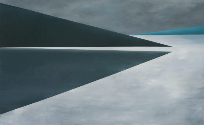 Natomiast prace Juliusza Kosina które łączą 2 opisane powyżej światy: uporządkowane linie charakterystyczne dla abstrakcji geometrycznej, jasno określony temat, jakim jest pejzaż, ale przedstawiony w sposób niedosłowny, zaklęty w liniach i uporządkowanych płaszczyznach oraz wysublimowanych przejściach kolorystycznych. Tu rządzi konkret. Te prace sprzyjają koncentracji, klarowności, destylowania przemyśleń w decyzje – wspaniale odnajdą się w przestrzeni biurowej, czy w salach spotkań, by stymulować decyzyjność.